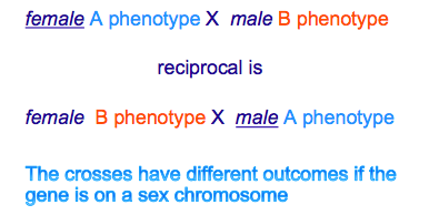 -reciprocal crosses are reversed, the transmission is father to daughter (e.g. parrots Budgerigars, albino)