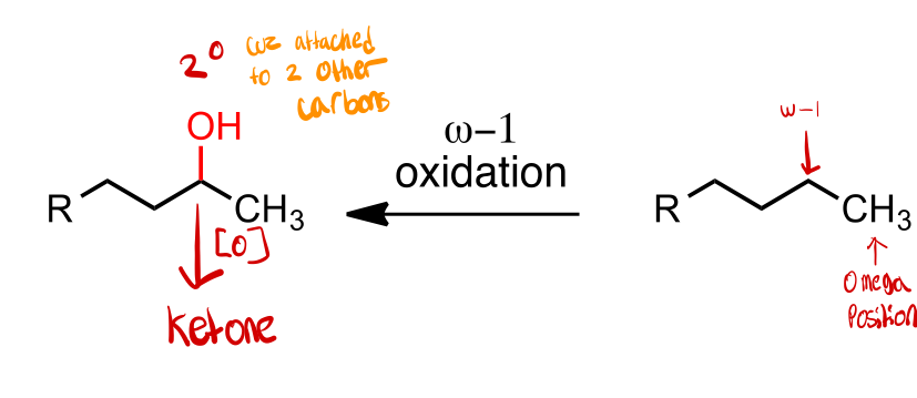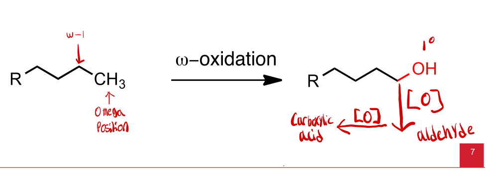 oxidation at the terminal methyl group of an aliphatic chain is called an “w-oxidation” (omega position)