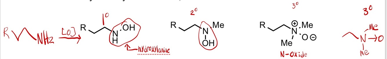 -Primary & Secondary amine yields a hydroxylamine (relatively basic)