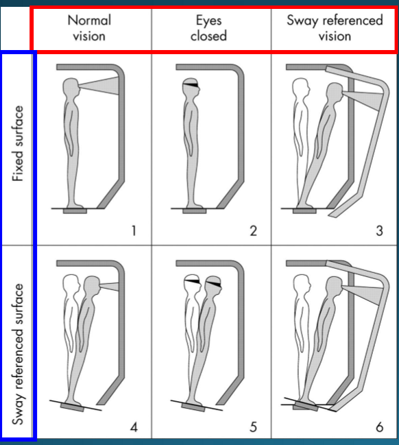 * normal vision, eyes closed, sway references vision