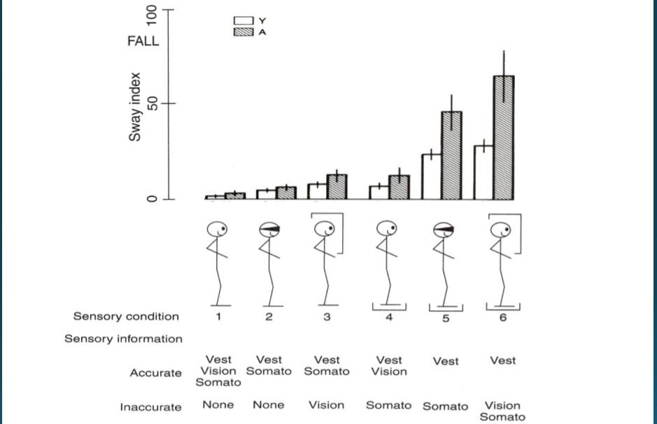 Changes in sway in different sensory conditions depends on?