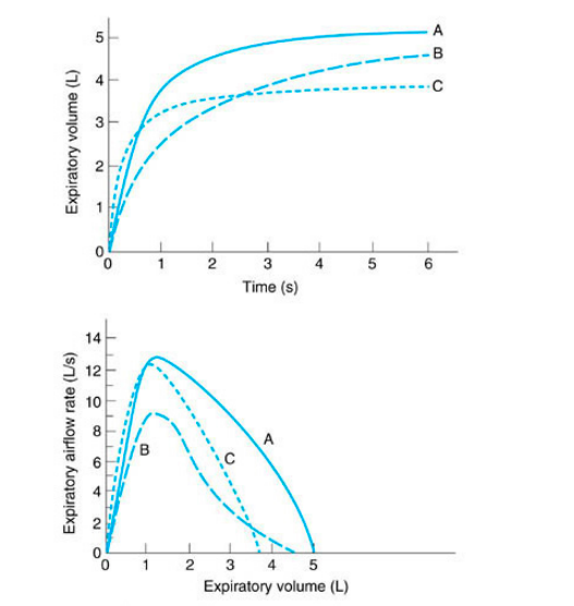 Asthma is characterized by a limitation of airflow on which clinical tests?