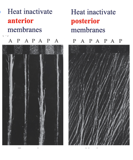 Results - no effect of heating the anterior membrane and inactivating it they still grew straight