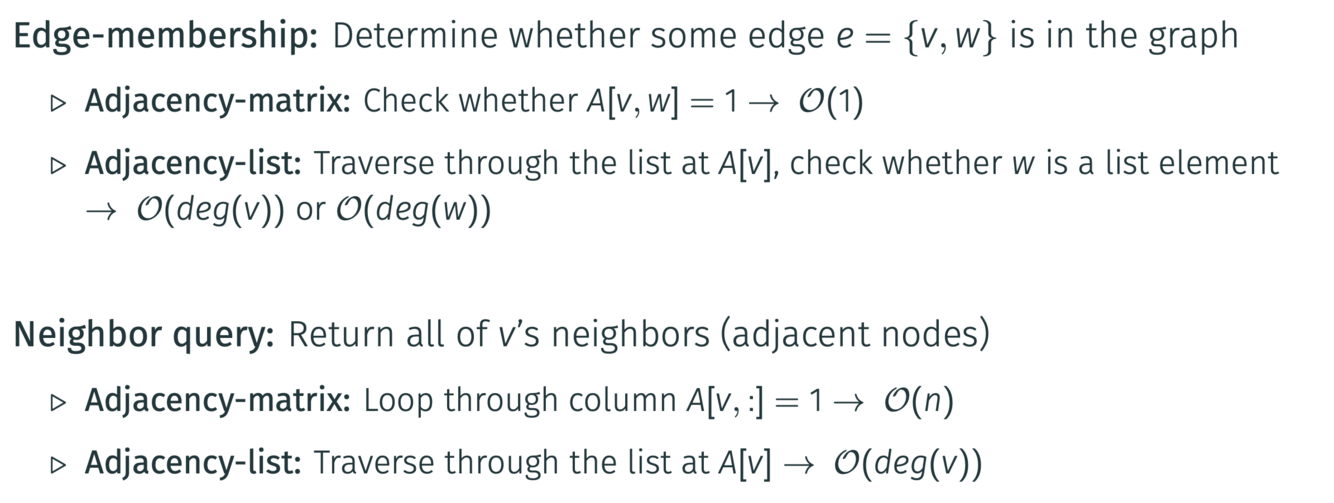 What is the complexity of edge-membership and a neighborhood query? And how do you get these results?