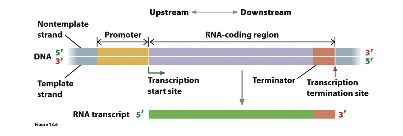 1) A specific promoter region is recognized and bound to by transcription factor or factors