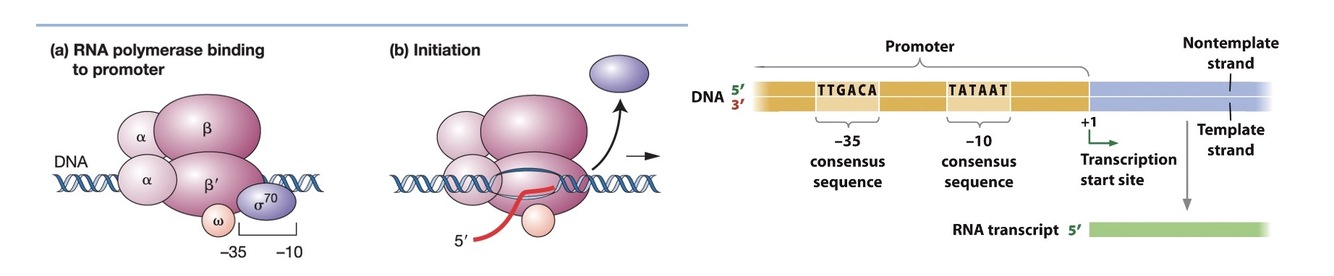 the Sigma70 protein is critical to identify the promoter and initial binding to the -35 and -10 regions
