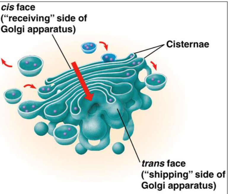 - Membrane transferred in vesicles to other organelles or cell membrane