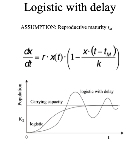 Delays can cause oscillations or fluctuations in population size before stabilizing near carrying capacity.