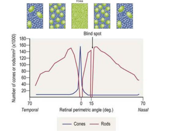 Distribution of rods and cones