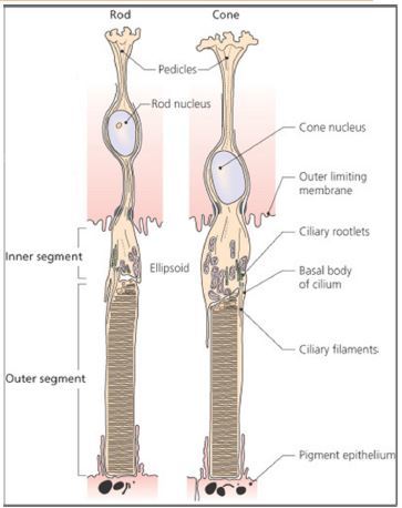 The photoreceptor layer contains the outer segment & part of the inner segment of the cell.