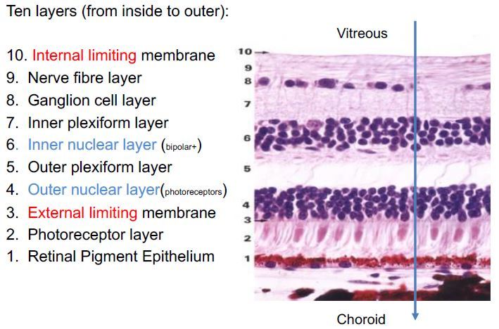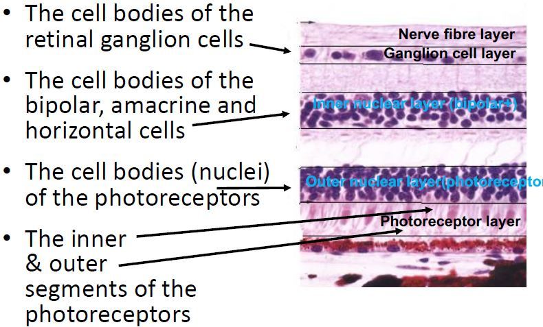 Retinal nuclear (cell body) zones