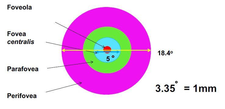 Fovea centralis = total 5o (when discussing the fovea)