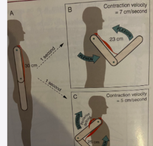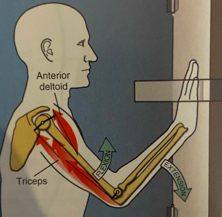 during shoulder flexion, extending the hand and wrists reduces the rate and amount of shortening needed by the triceps, producing a more optimal movement