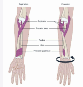 Flexors and extensors have origins at the elbow and move the hand and wrist
