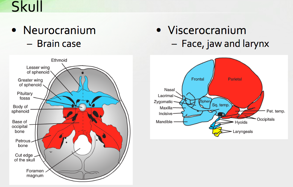 What is formed by the neurocranium versus viscerocranium?