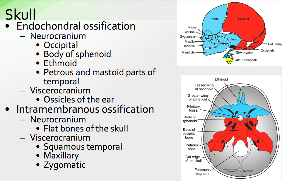 Which neurocranium bones of the skull undergo intramembranous ossification?
