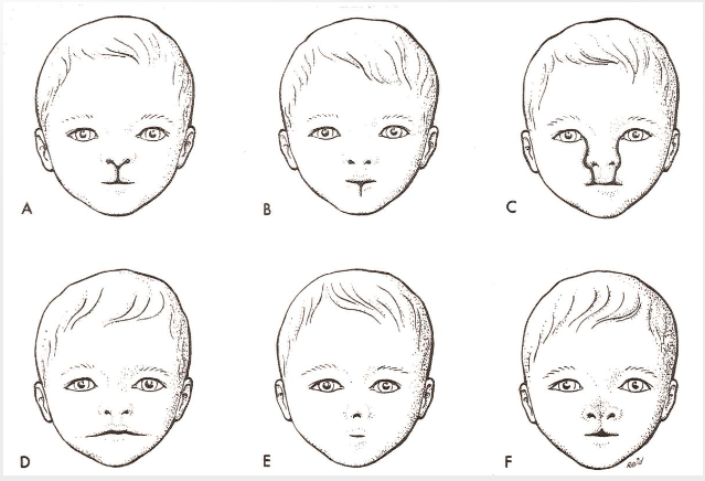 Embryologically how can we account for the facial clefts in A-F?