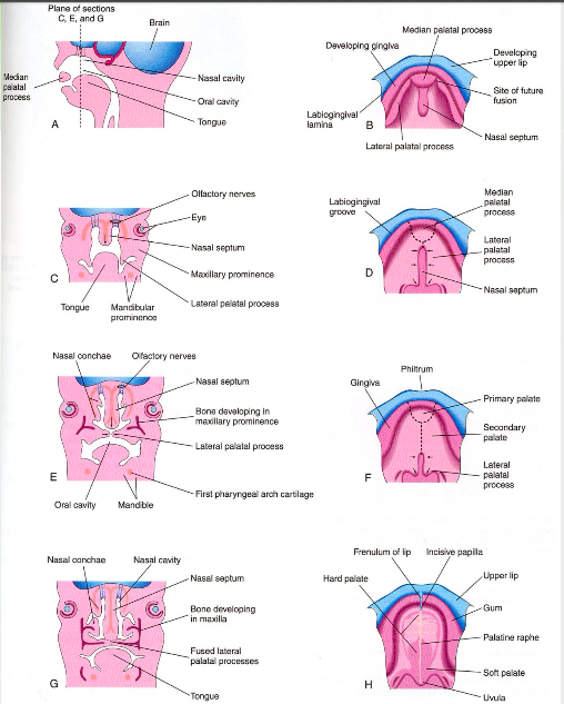 When does development of the palate begin and what is the critical period?