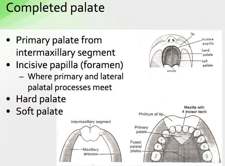 Where is the primary palate derived from and explain how it forms the completed palate?
