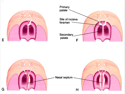 Step 4: fusion of medial nasal prominences w/ each other and fusion of medial and lateral nasal prominces w/ maxillary prominence