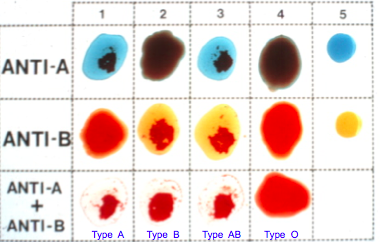 Type O no agglutination anti A or B (containing both antibody A and B)