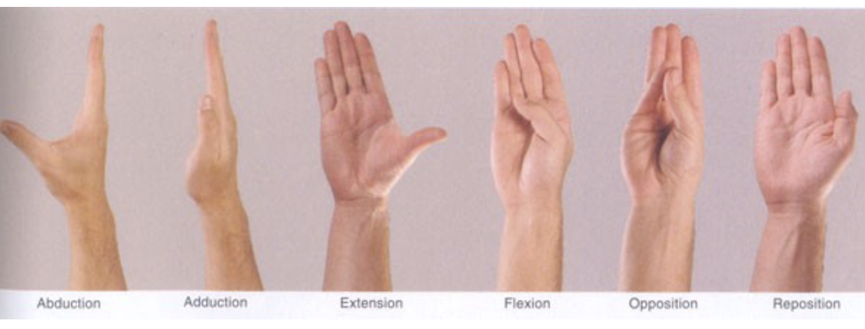 Action: Abducts thumb and extends it at
