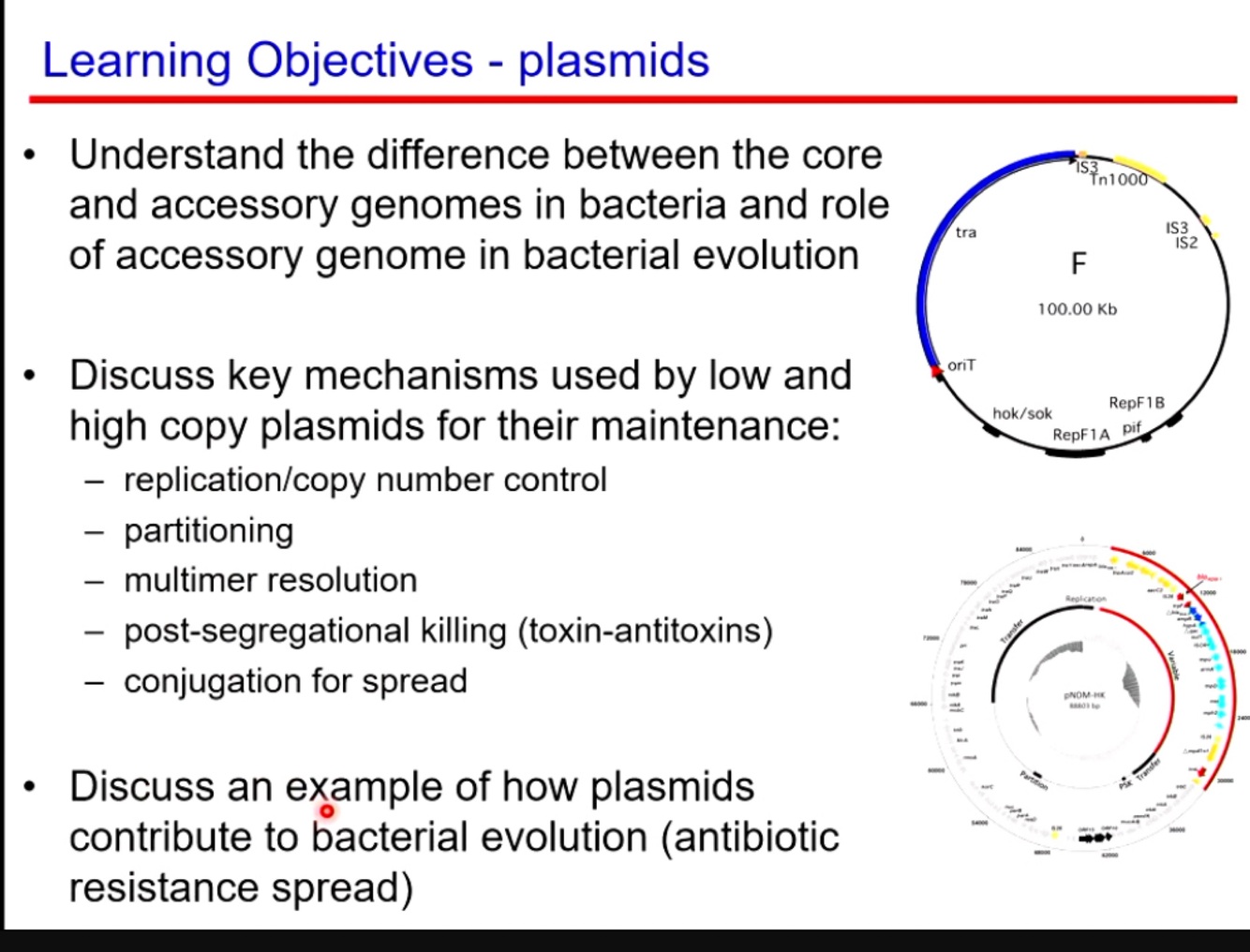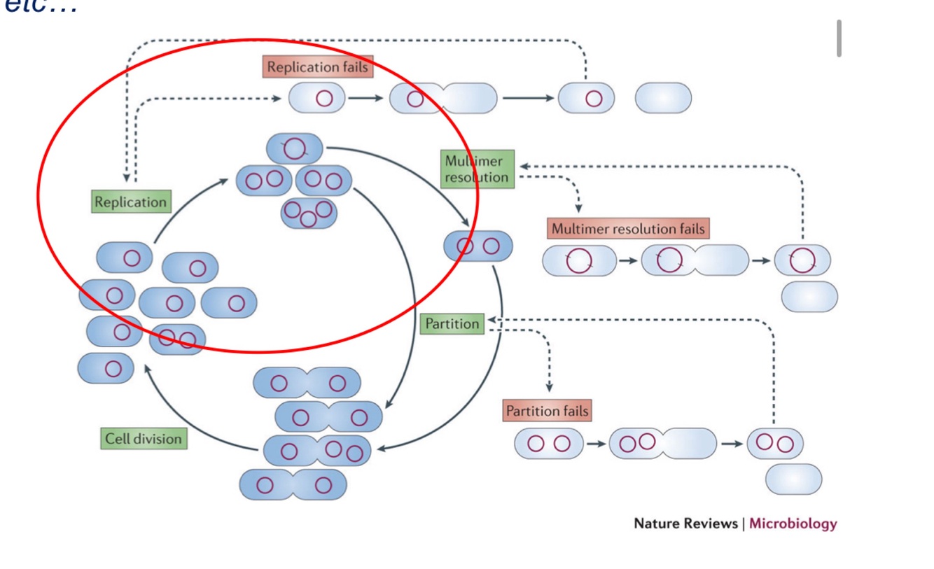 Plasmids must maintain themselves in the population by replication, partitioning/segregation and resolving multimers etc…