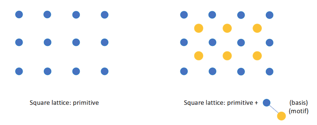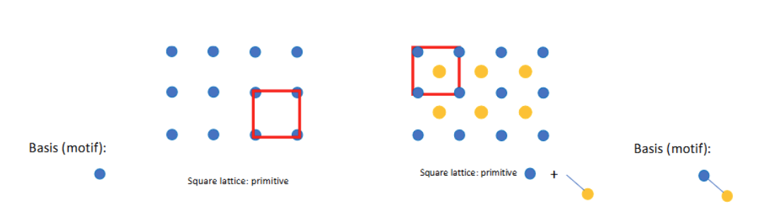 a lattice; an atom (or group of atoms) – called the “basis” is “attached” to a single lattice point