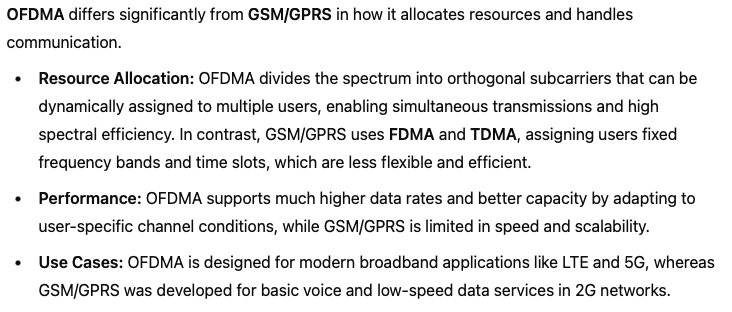 How is OFDMA better than GSM/GRPS? (name 3)