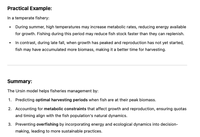 By predicting optimal harvesting times and accounting for metabolic constraints to avoid overfishing.