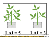 LAI represents the total one-sided leaf area per unit ground area and influences the amount of light reaching the ground.