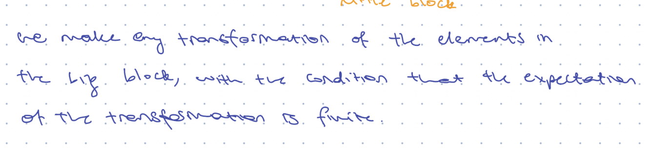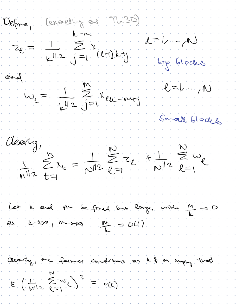 Show why we can assume that the second moment of the second term is o(1) in the blocking split.