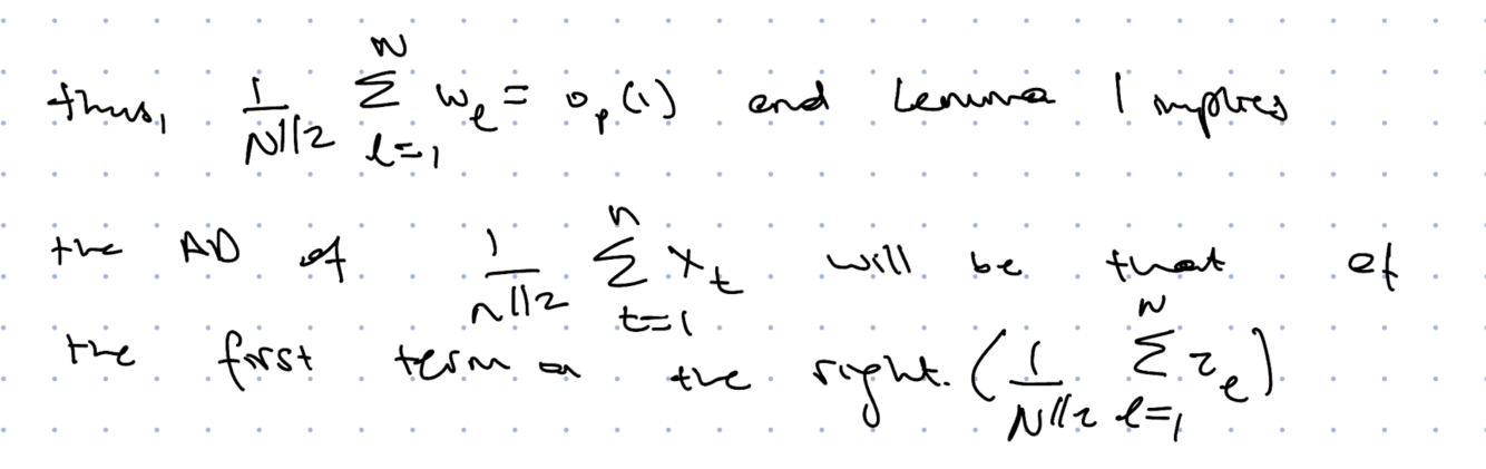 Use Lemma 1 to argue why we’re interested in the AN of the first term in the theorem for weakly dependent time series.