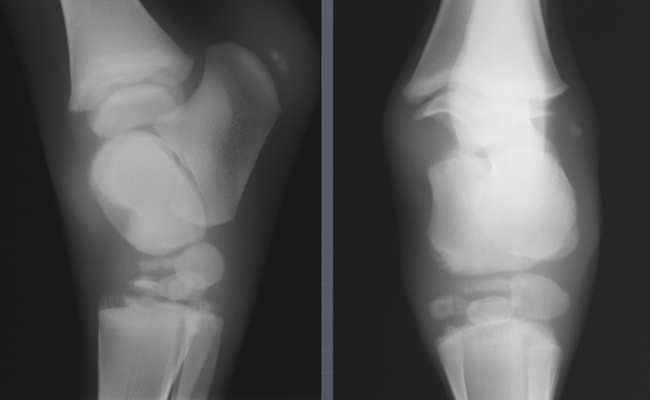 communication between the two joints leads to the distention