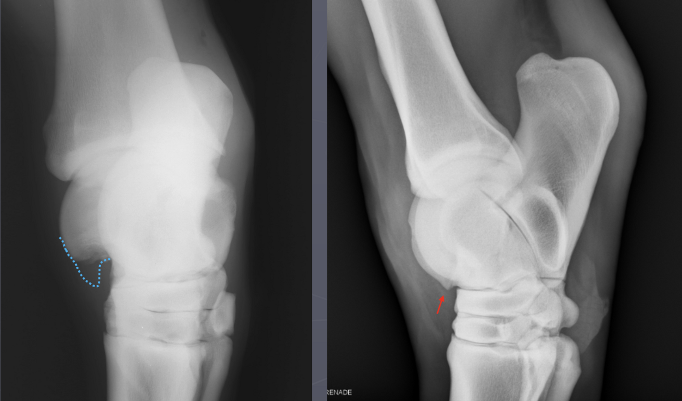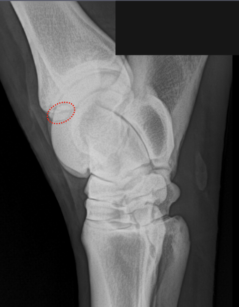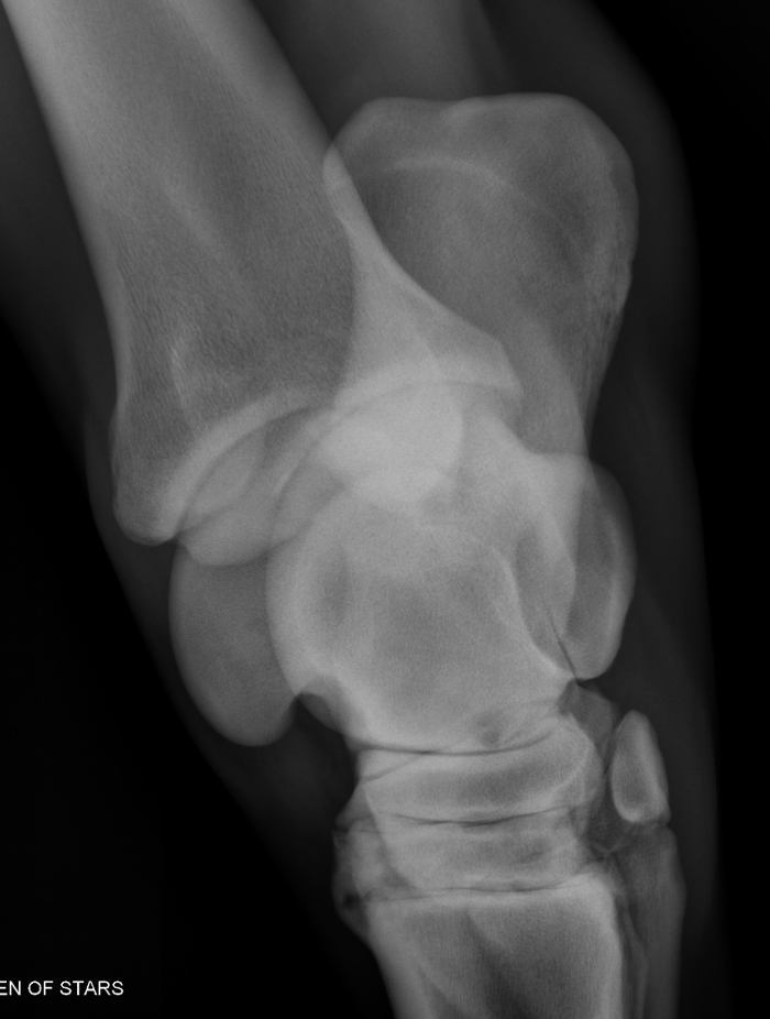 -proximal intertarsal joint (less common)