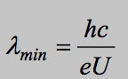 Formula to calculate minimum wavelength with the accelerating potential difference.