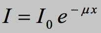 Formula showing the exponential decrease of light intensity with distance covered.