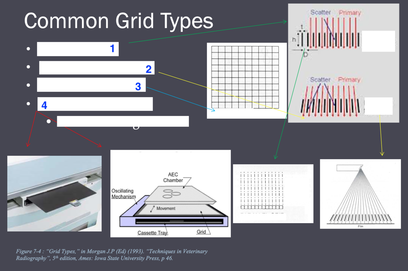 Absorbs scatter photons before they reach the film but also absorbs some of the transmitted beam and hence greater exposure factors are required to compensate