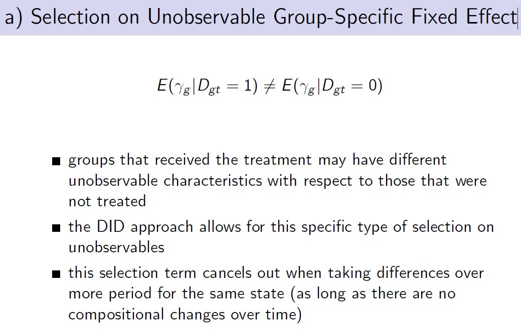 Explain how selection on unobservable group-specific fixed effects could violate the DiD assumptions?