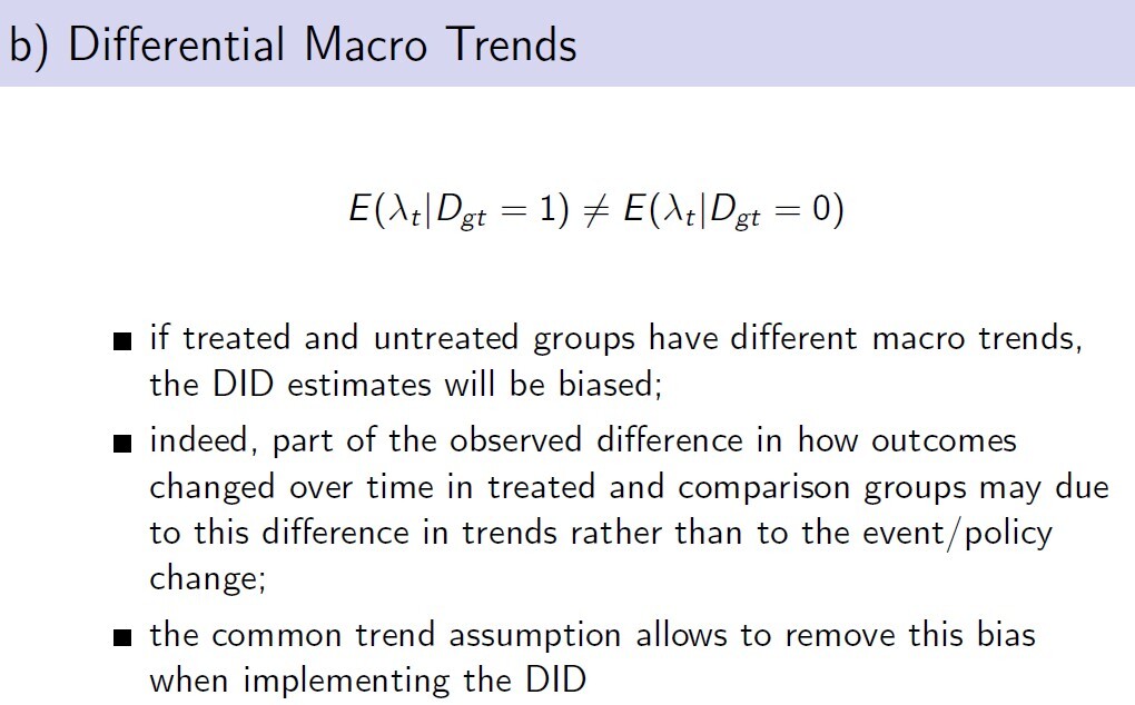 Explain how one could control/test for different macro trends in a DiD experiment?