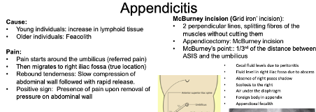 – Found in Right Iliac fossa or right lower quadrant – McBurney’s point