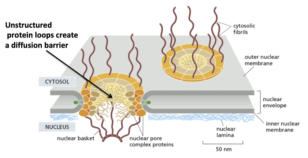 what types of proteins can pass through nuclear pores?