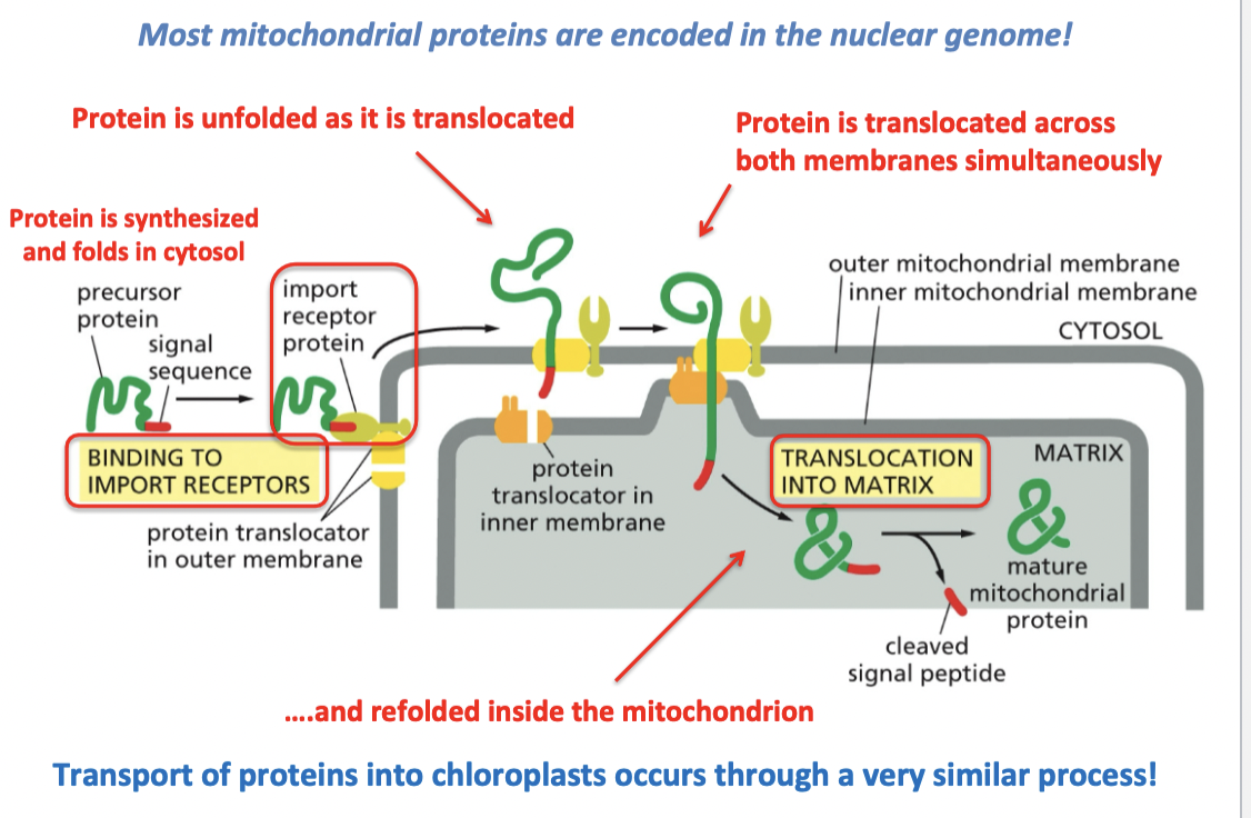 2) transport across membranes (ER, mitochondria, chloroplast)