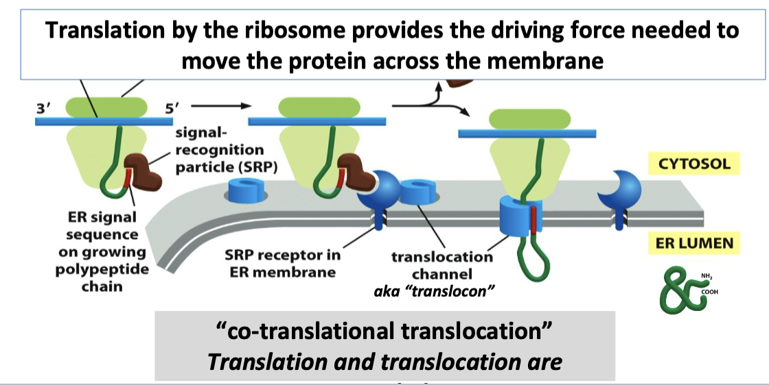 transport into the ER (aka “co-translational translocation”)