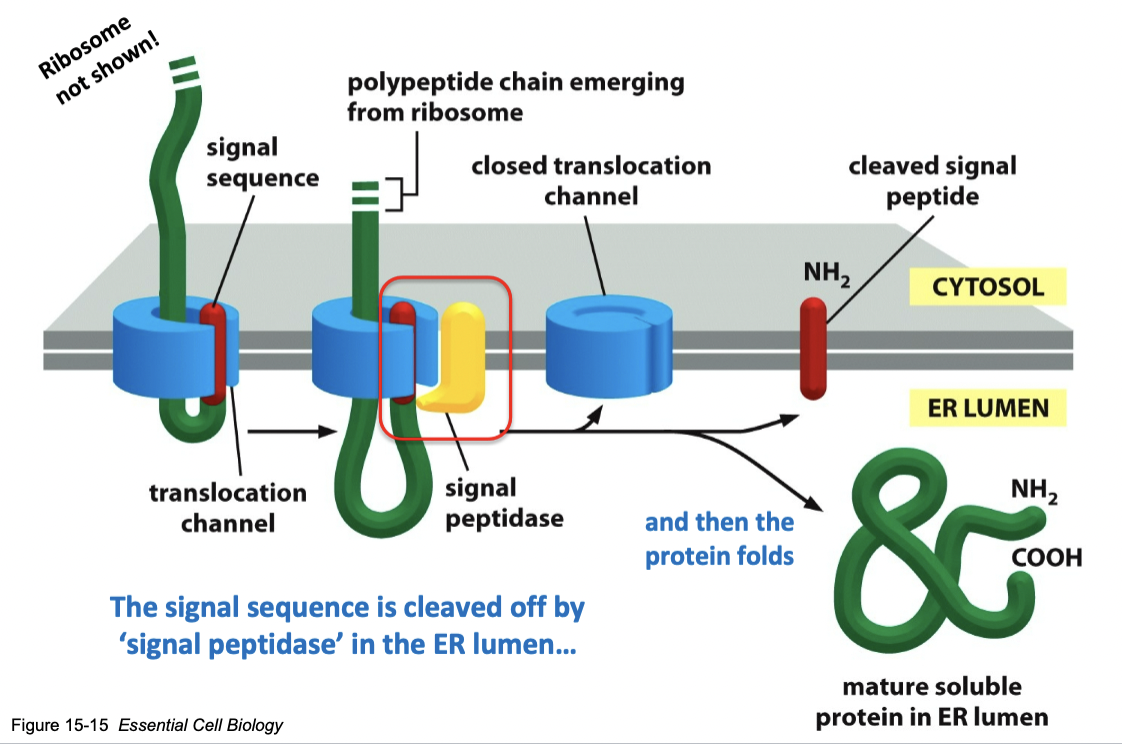 SS is cleaved off by “signal peptidase”
