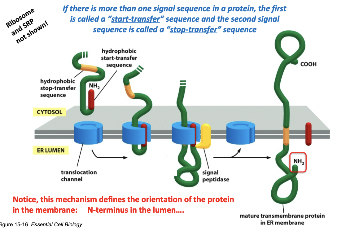 this mechanism defines the orientation of the protein in the membrane: N terminus in the lumen