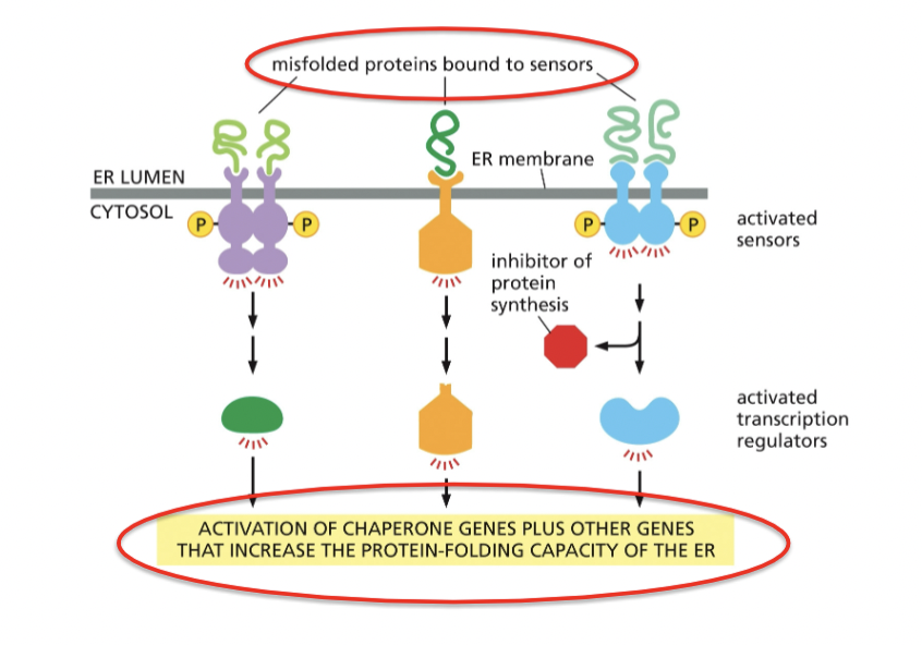 translocated proteins must fold once in the ER, cells sense unfolded proteins through the UPR