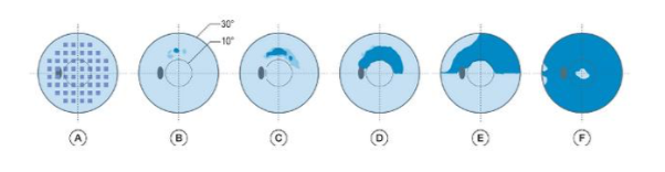 Early significant changes produces what type of visual field loss