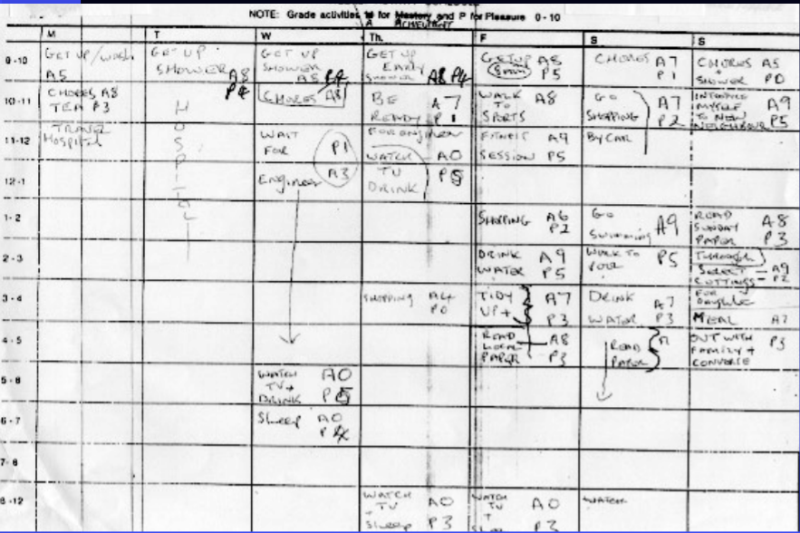 1. Links mood and activities/lack of activity + –> what changes in behaviour might improve mood?
