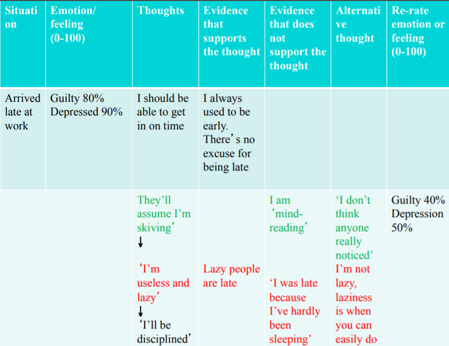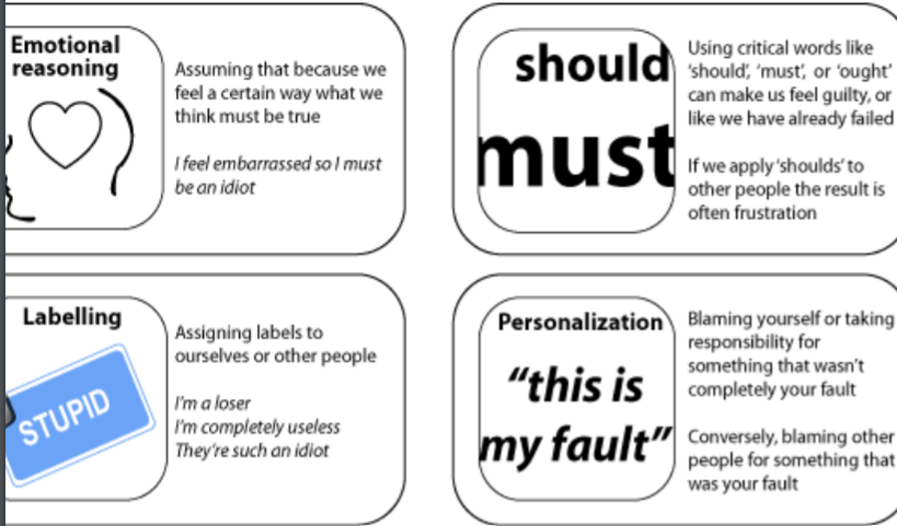 You look at their thoughts and ask them if it fits with any of the cognitive distorsions below.